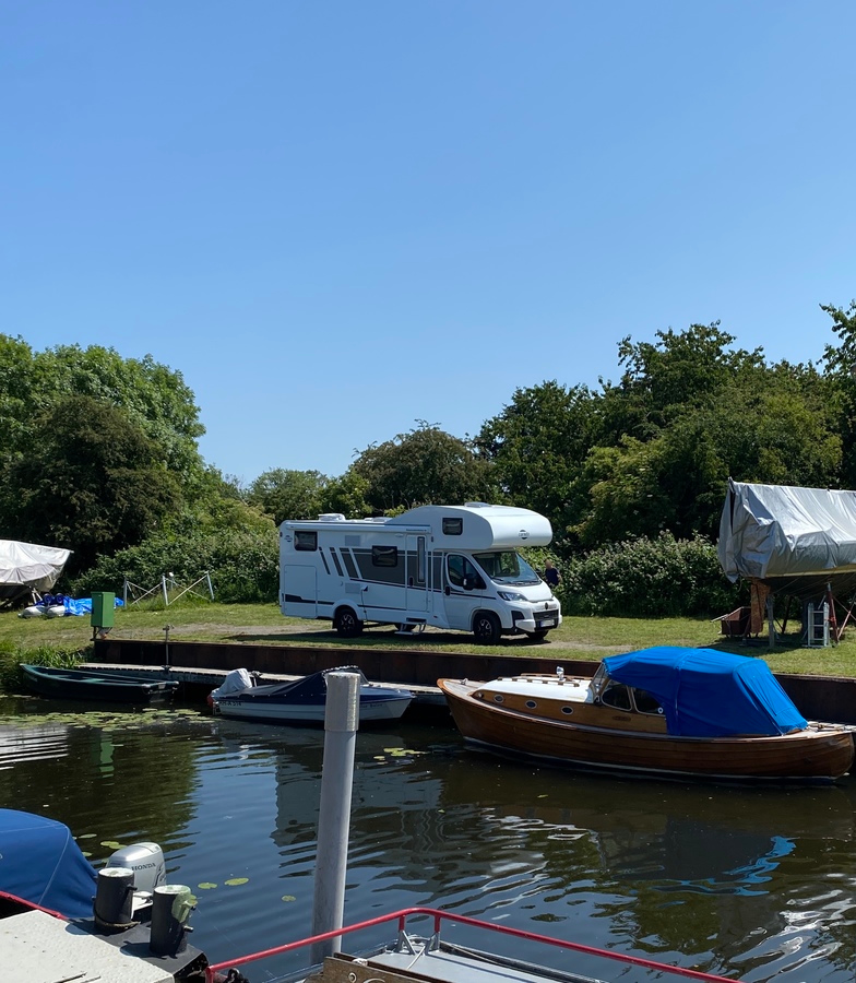 Für Ihr Wohnmobil bis 9 m Länge bieten wir Ihnen einen Stellplatz in unserem Yachthafen direkt am Wasser an. So manches elegante Boot fährt auf der Dove Elbe direkt an Ihnen vorbei. Hier sind Sie umgeben von viel Grün der Hamburger Vier- und Marschlande. Vom 1. Mai bis 3. Oktober sind wir für Sie da.